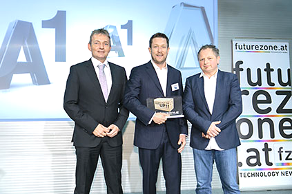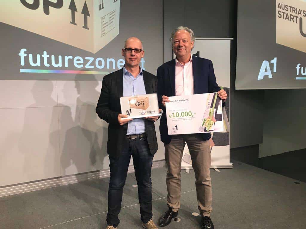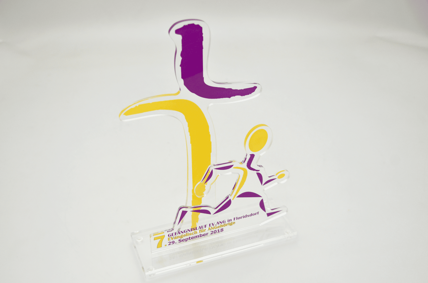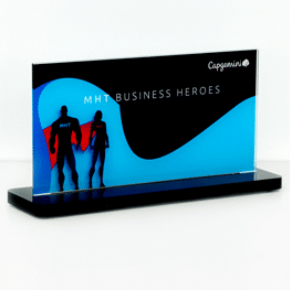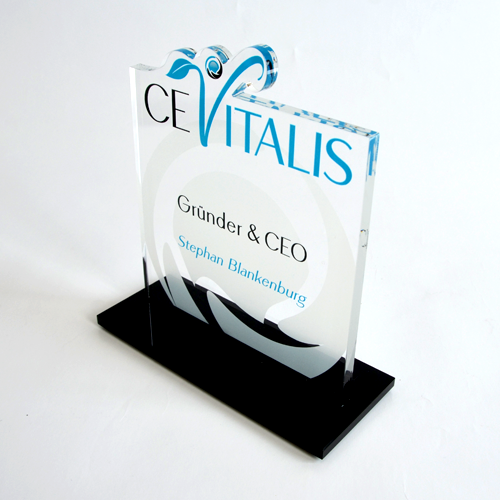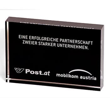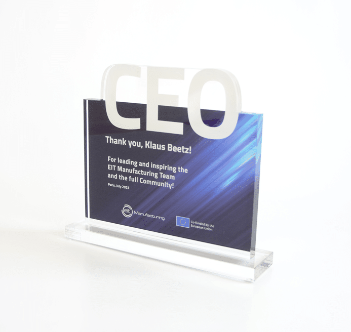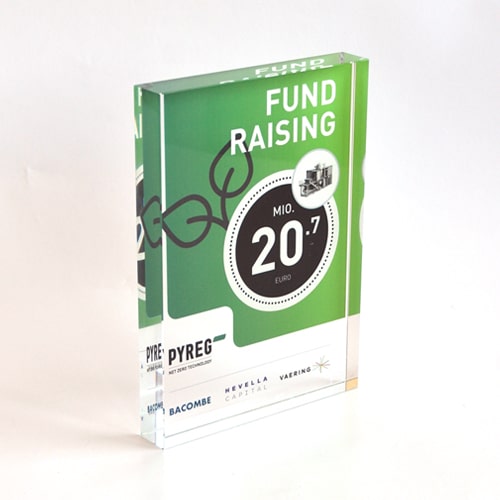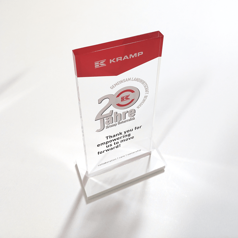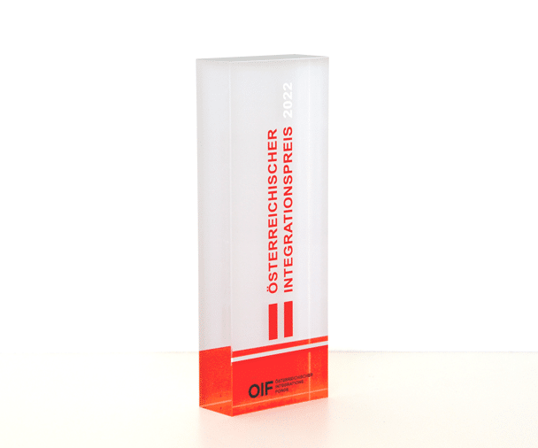 Um diesen Pokal und um 10.000 Euro ging es im A1 Start Up Campus. Ein Pokal gefertigt aus weißem und glasklarem Acrylglas. Der Hinterglasdruck verleiht dem Pokal eine schöne Tiefenwirkung.