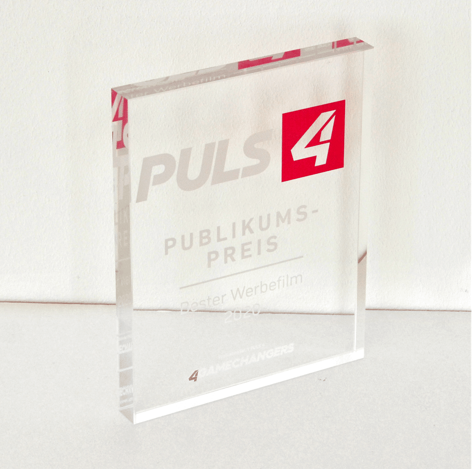 Auch für das Finale im Rahmen des 4GAMECHANGERS Festivals durften wir kreativwerden. Internationale Stargäste erfreuten sich bereits an diesen Awards, die komplett aus Acrylglas gefertigt wurden. Dabei wurde die 4 als Logo und Keyvisual in Szene gesetzt.