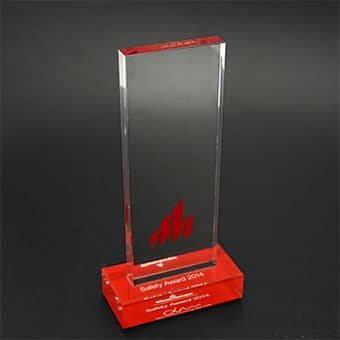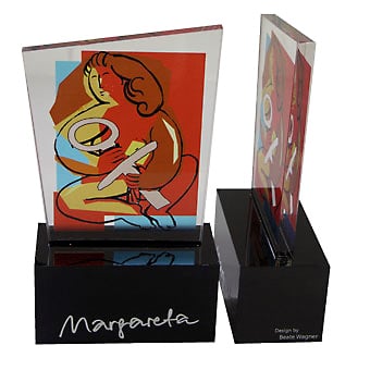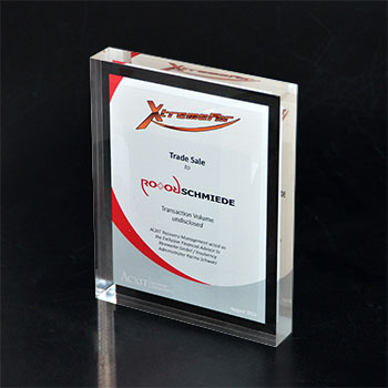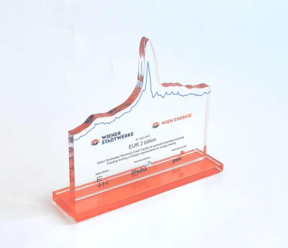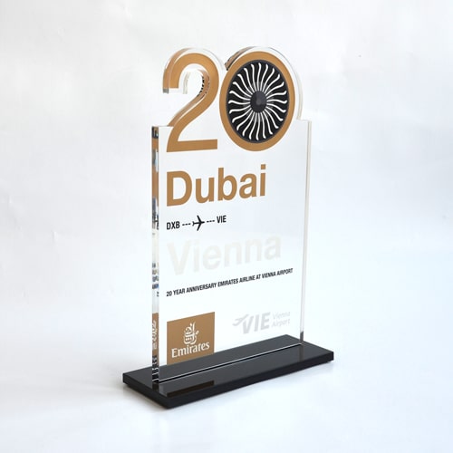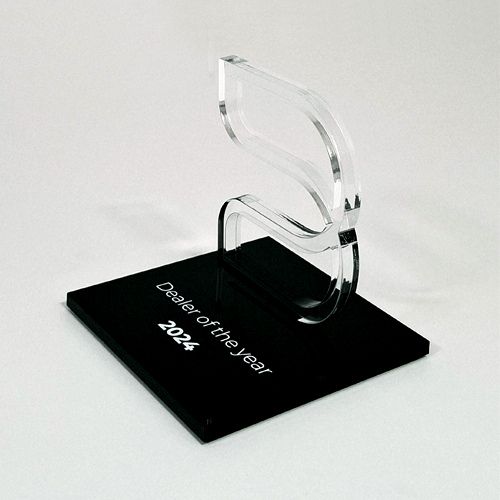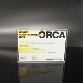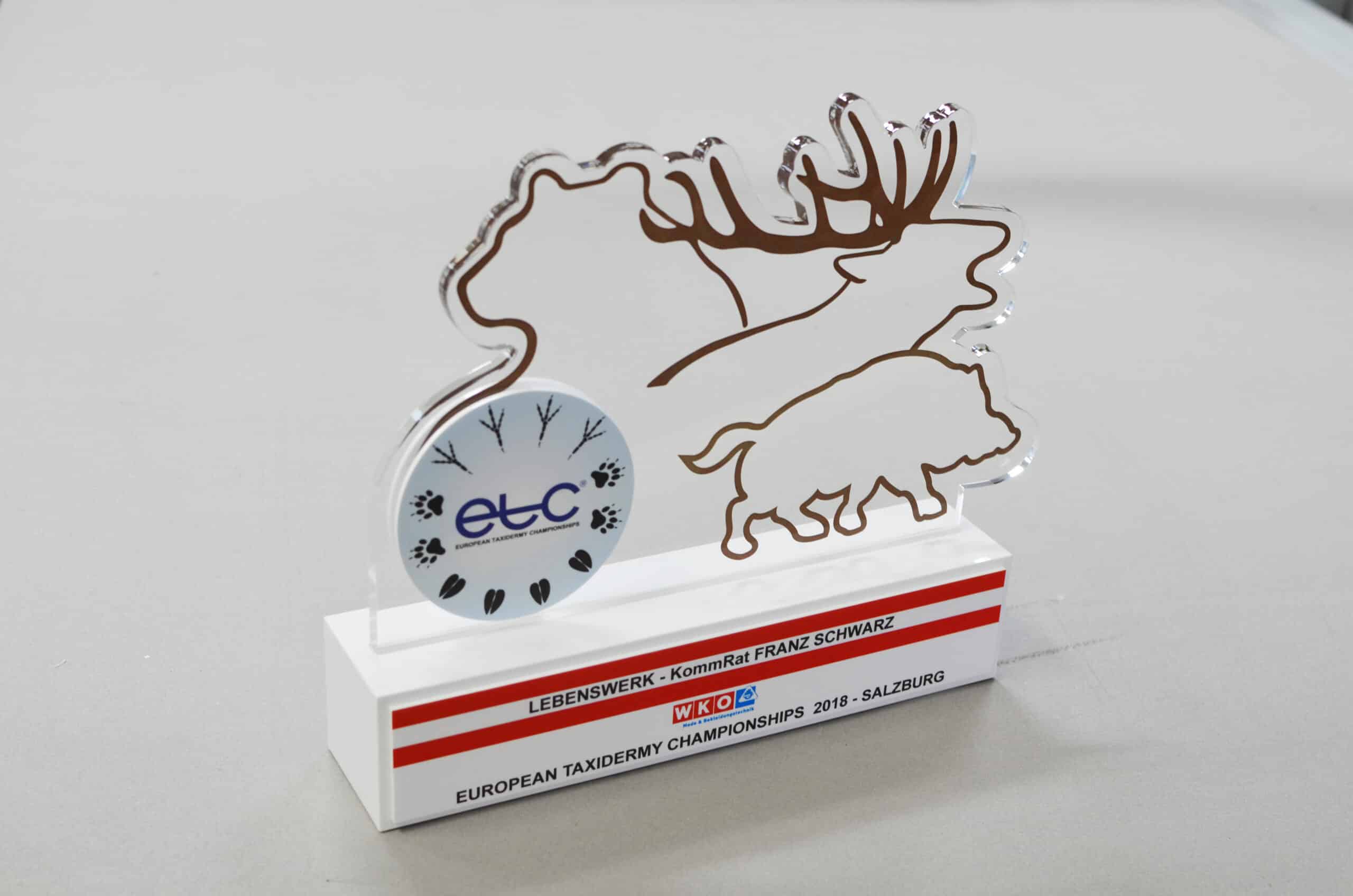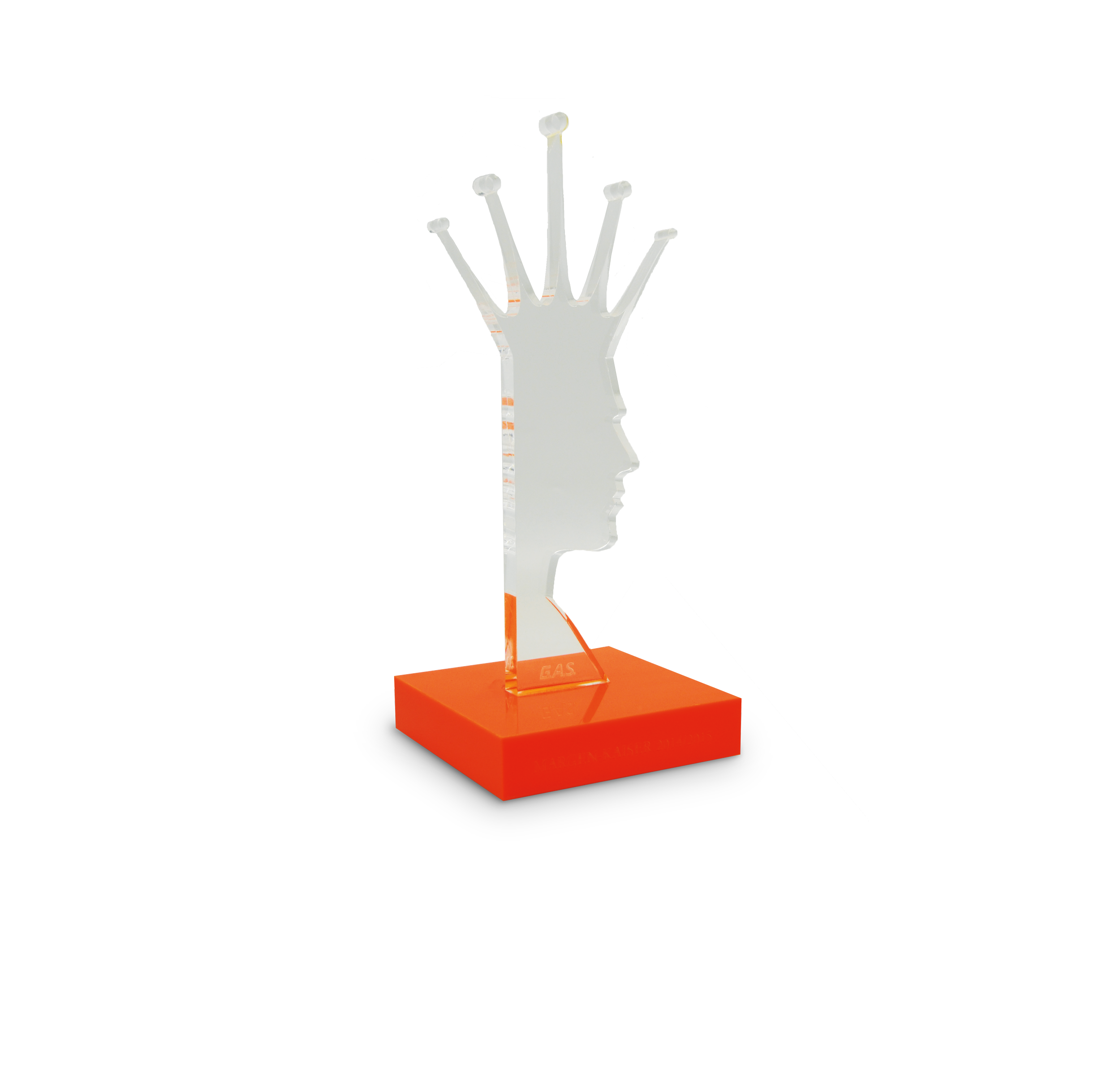 Für die gehobene Schneiderkunst ist der „Haute Couture Award“ das österreichische Fashion Event. Eine Jury aus Prominenz und Fachleuten kürten die Sieger mit einem einmaligen Award aus dem Hause Eremit. Dem „Haute Couture Austria-Logo“ nachempfundene Award symbolisiert in drei unter schiedlichen Größen die Rangordnung der Preisträger. Mittels Laser wurde die Buchstaben-Kontur geschnitten. Hier trifft schwarzes auf glasklares Acrylglas.